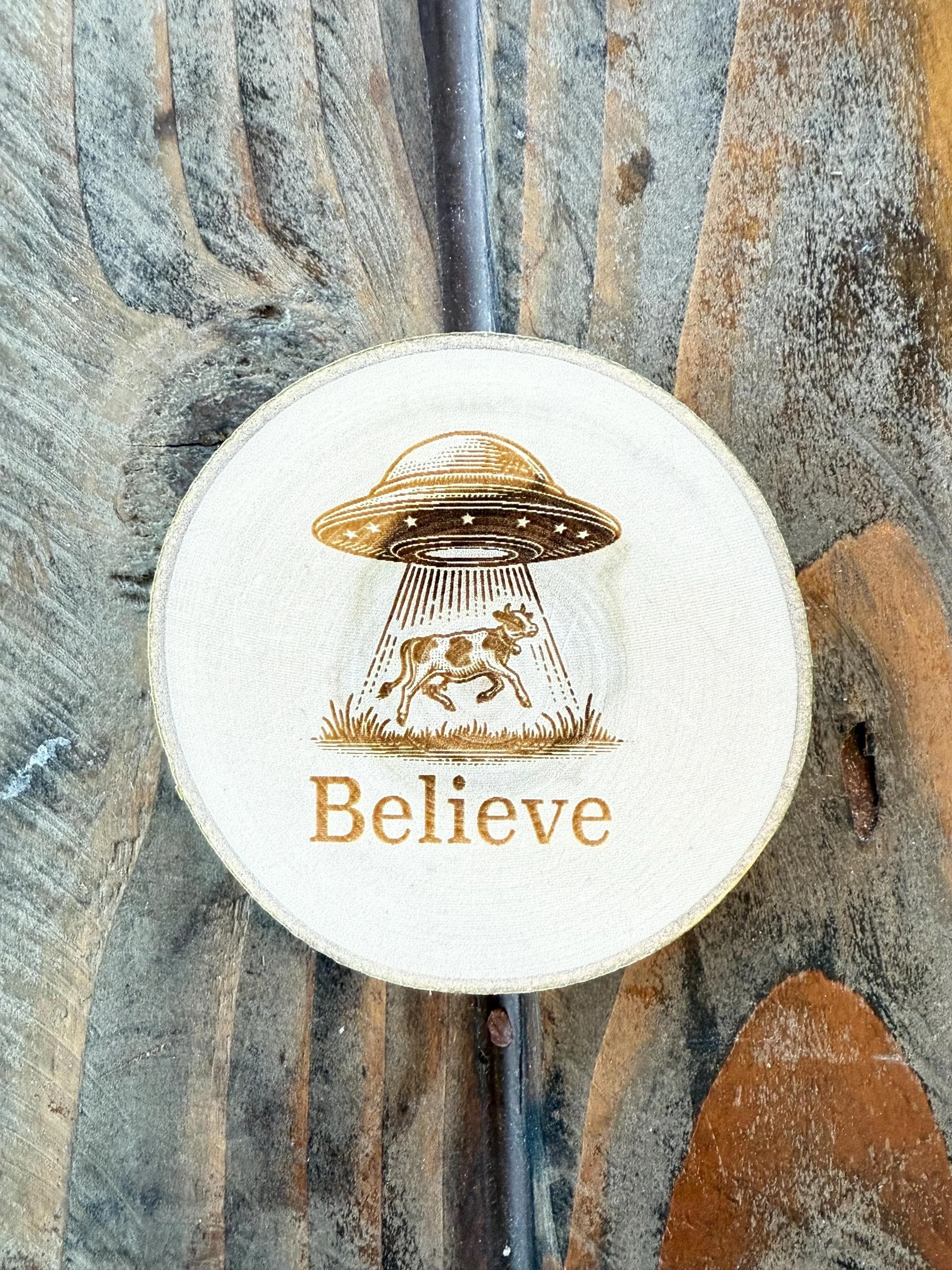 These Alien Coasters are the perfect gift for anyone who is obsessed with UFOs, aliens, or the supernatural. We have made a variety of designs to fit every aesthetic. We have 7 designs, but you can just pick 1, 2, 4, or all 7! For your specific requests, add a note during checkout or use the drop down menu during checkout.