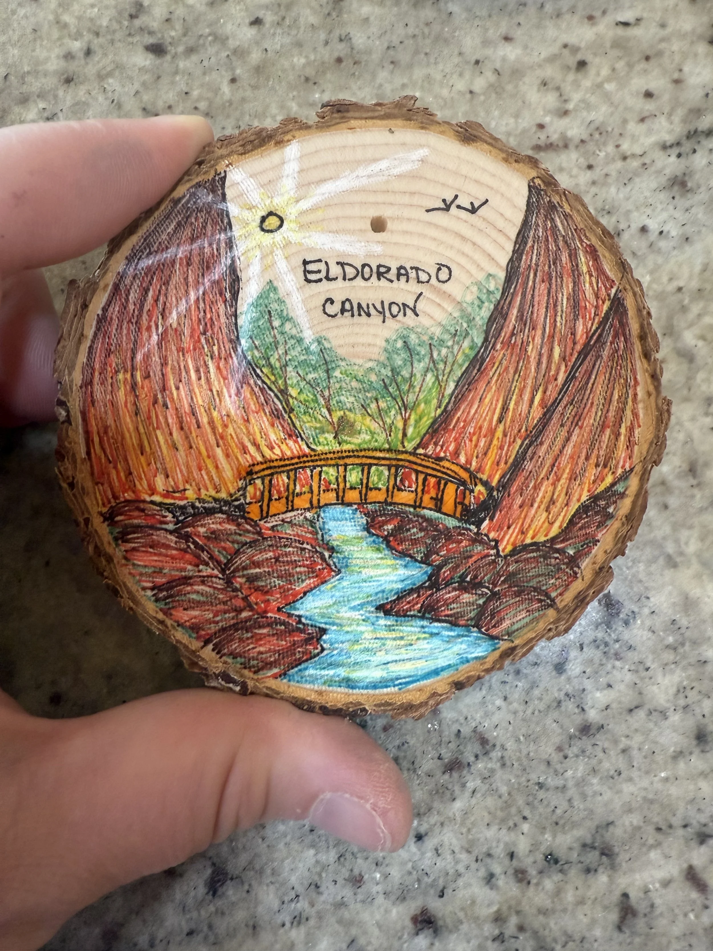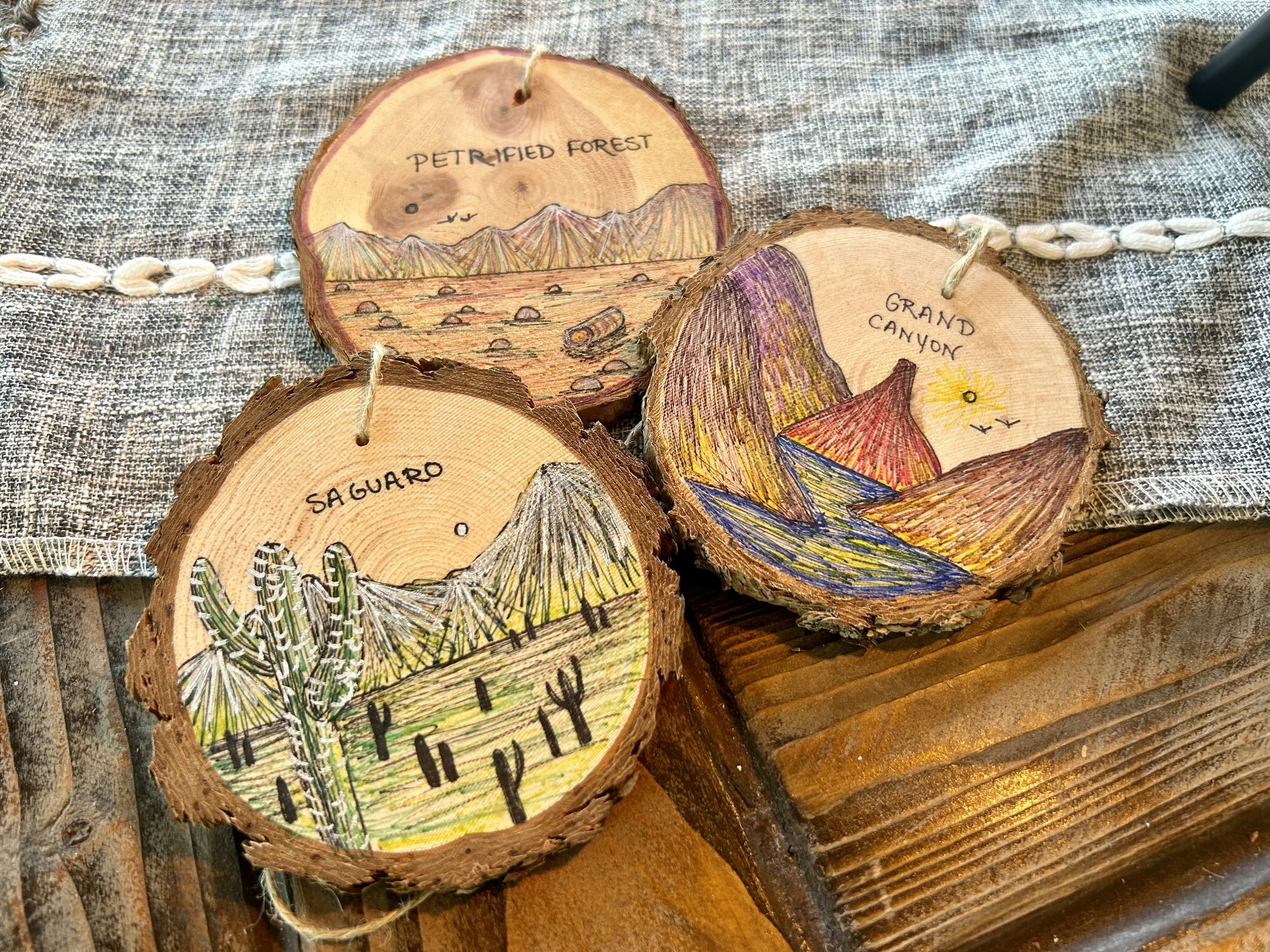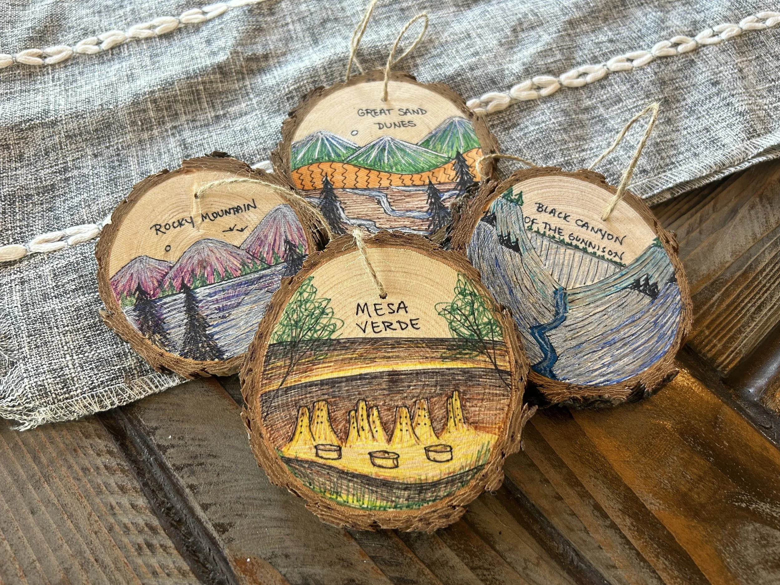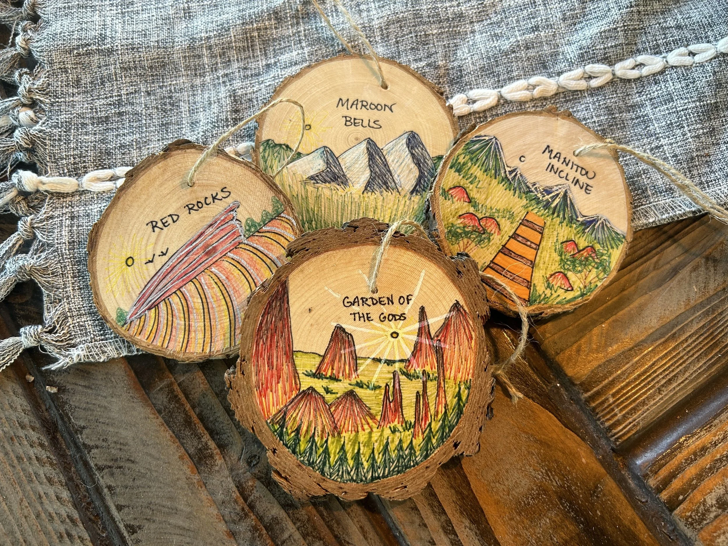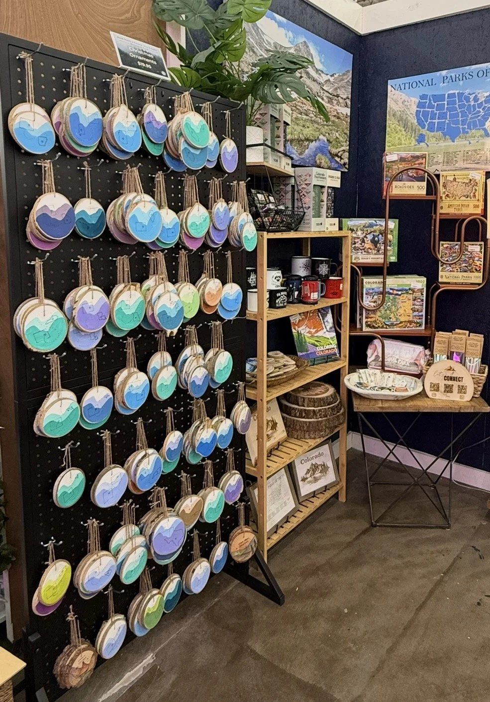 First and foremost, we are produced by artists, in a small art studio in Denver. We use reclaimed wood, recycled materials, and reduced packaging. Our souvenirs are not mass produced, which is something that customers absolutely LOVE.