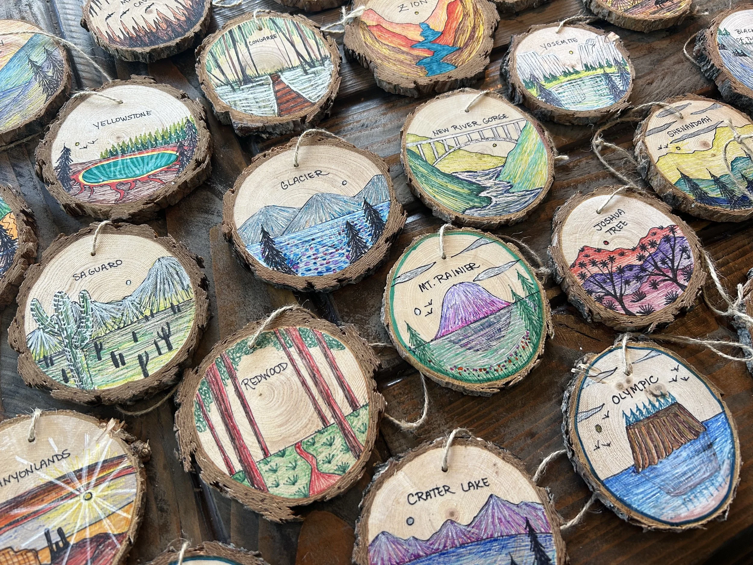 We offer hand made in USA souvenirs celebrating the great outdoors, vacations, public lands, and more. We can offer custom designs, hand drawn by artists, and can guarantee quick sell through based on years of direct to consumer proven sales.